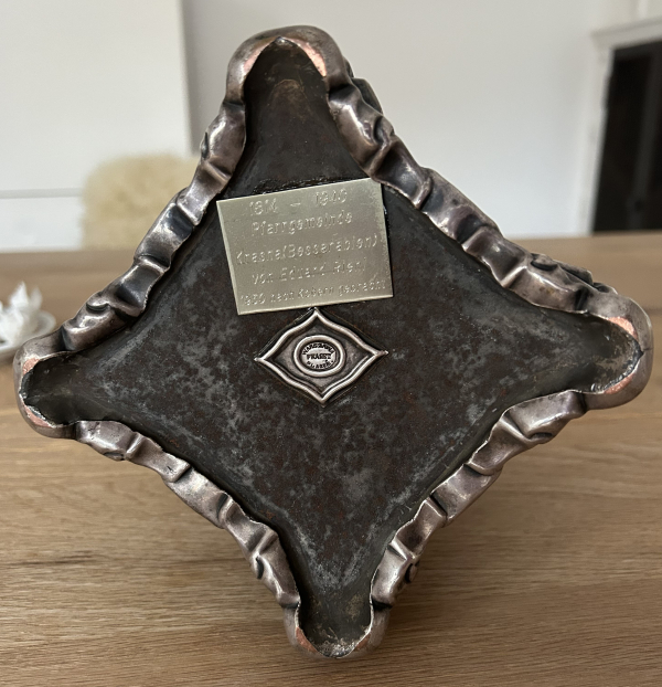 Nach mehreren Jahren übernahm der Kulturkreis die Kosten für die Reparatur. Bei der Reparatur wurde eine bleibende Plakette Eduard Riehl unter dem Fuß angebracht. Mit der Inschrift wurde die Herkunft dokumentiert.