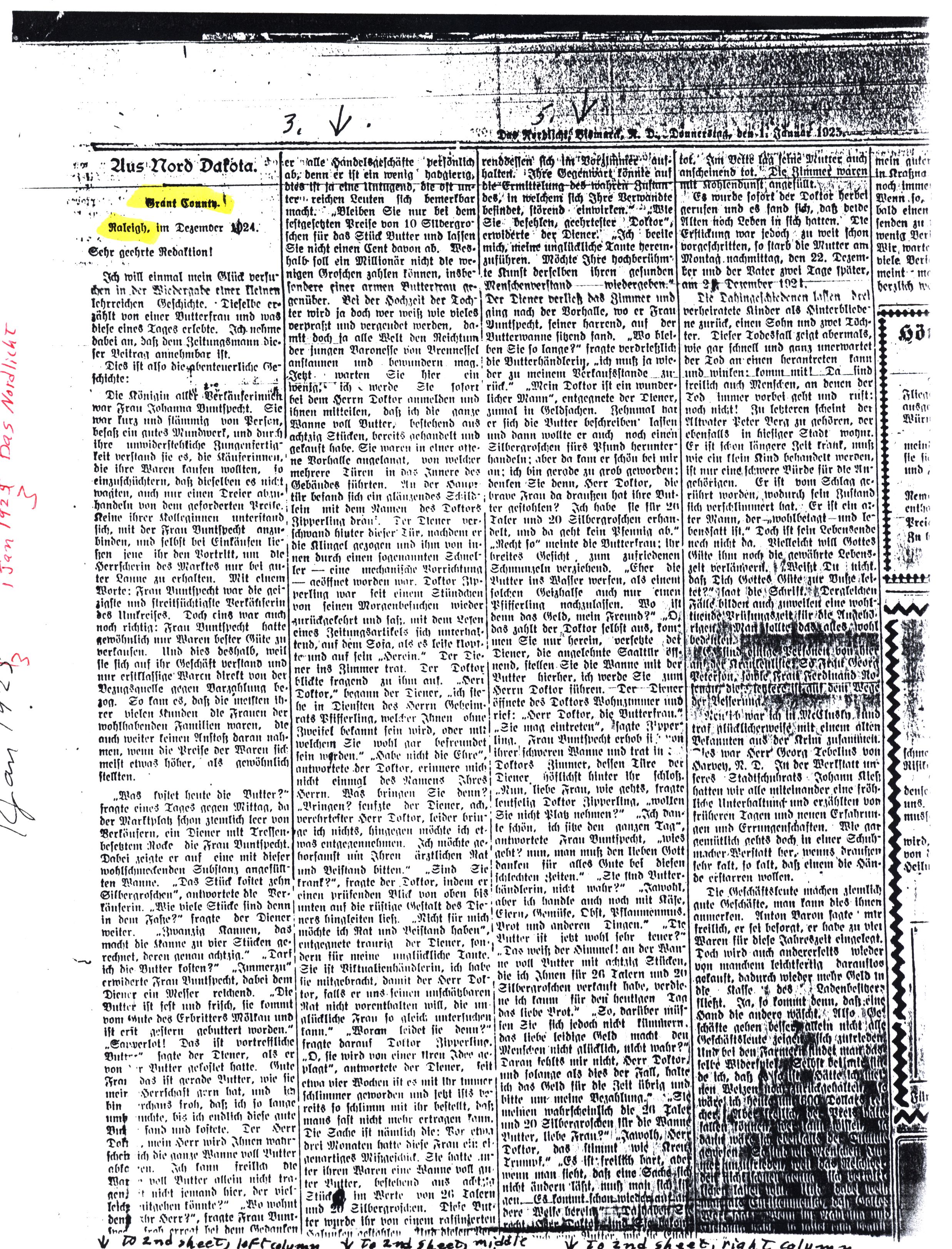 So much for the butter story for today. I will finish the tale at another time. Friendly farmers’greetings to all the lady readers of the Nordlicht.