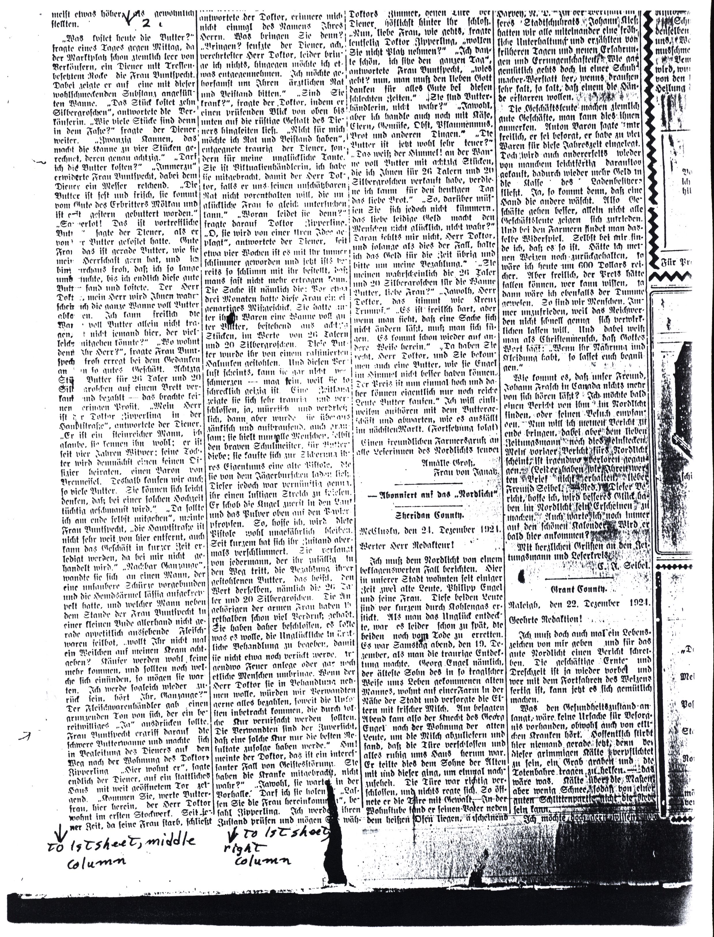 The servant rang the bell and disappeared behind a door. Dr. Zipperling had returned from his office about an hour ago and sat on the couch reading the paper. He answered, “Enter” to the soft knock on the door. The servant replied to the doctor’s questioning look, “Doctor, I am employed by council member Pfifferling, who you should know, or perhaps to whom you are even a friend”.