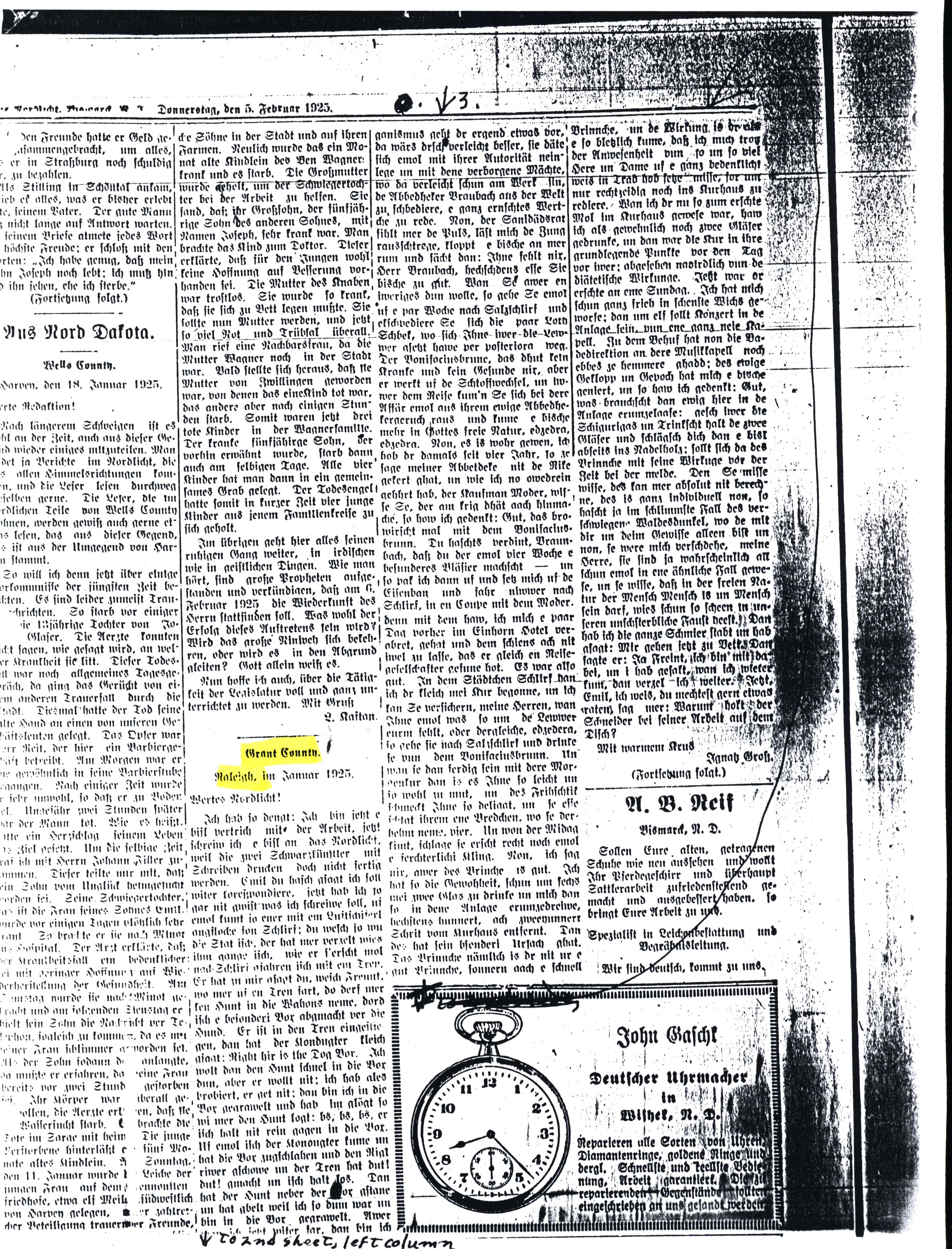 Emil, you have said I should continue corresponding. I was in a quandary of a subject to write about, when a fellow dropped by who had just come by airplane from the old country town of Schlirf. You know the place. He told me about his train trip to Schlirf. One cannot take a dog into the compartments. There are special dog boxes on the train; and, right away the conductor informed him of the facility. In order to entice his dog, Sport, to crawl into the dog box, he crawled in first and called for the dog. This was all in vain as the dog remained outside and barked, as the train whistled and chugged off. The conductor slammed the door shut and my friend traveled the entire distance to Schlirf in the train dog box. Sport took position in front of the dog box barking as if to say what a dumb idea it was to crawl into that box.