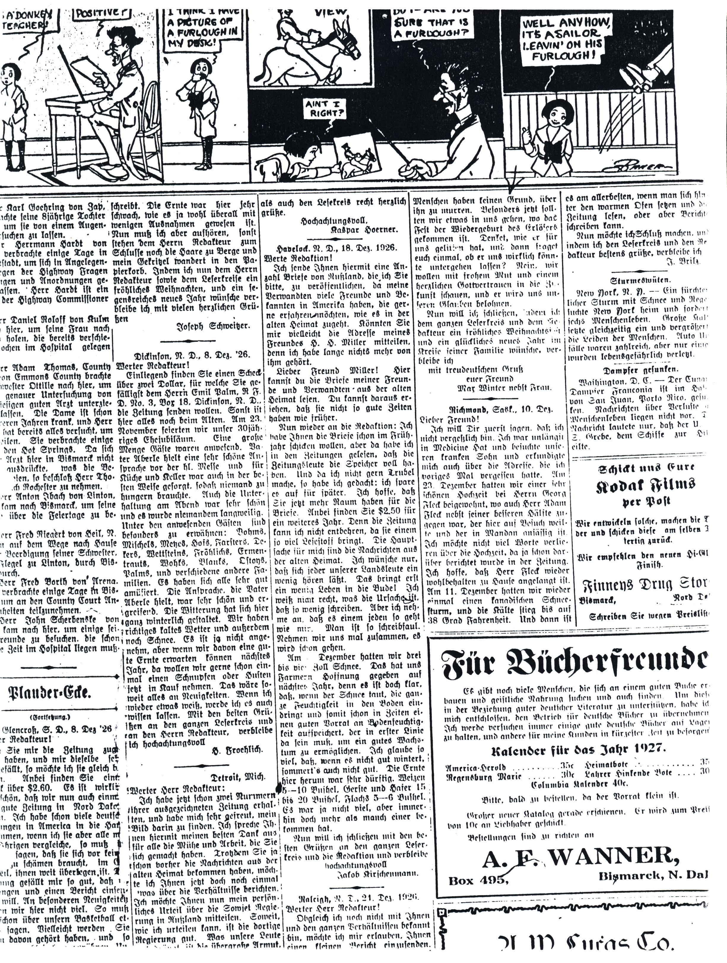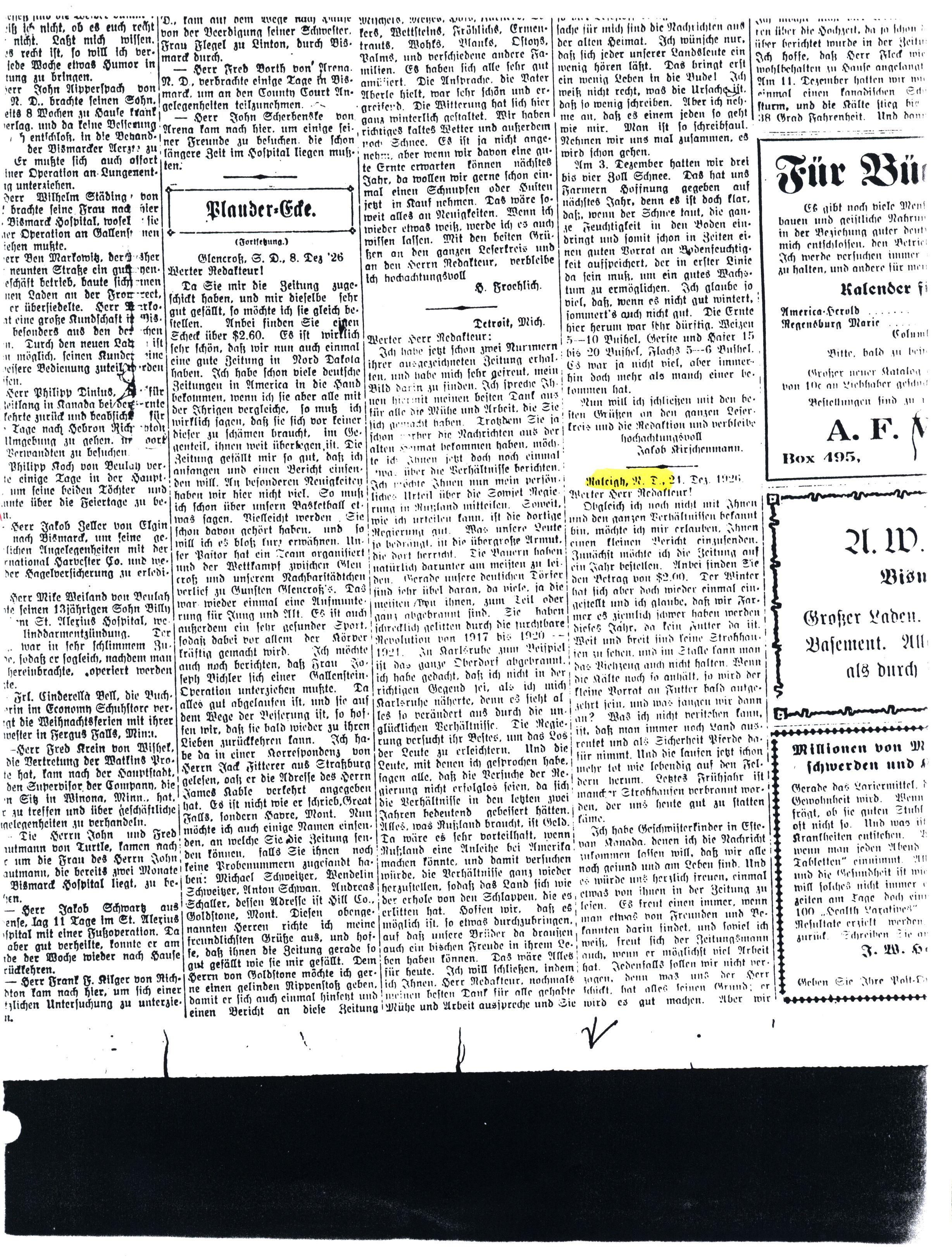 Letter: Raleigh, North Dakota 24 December 1926