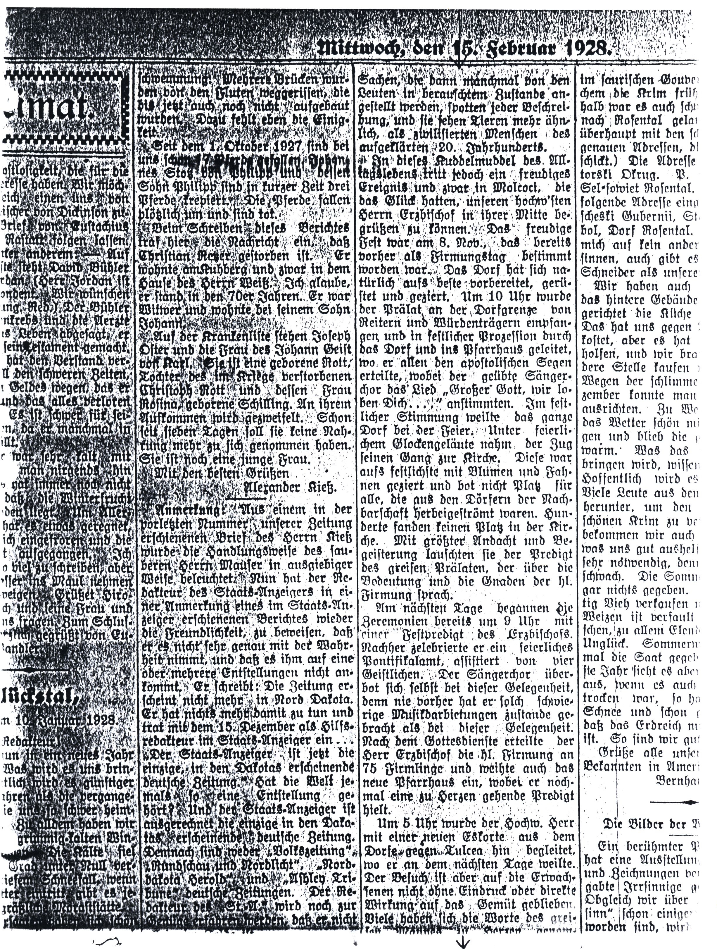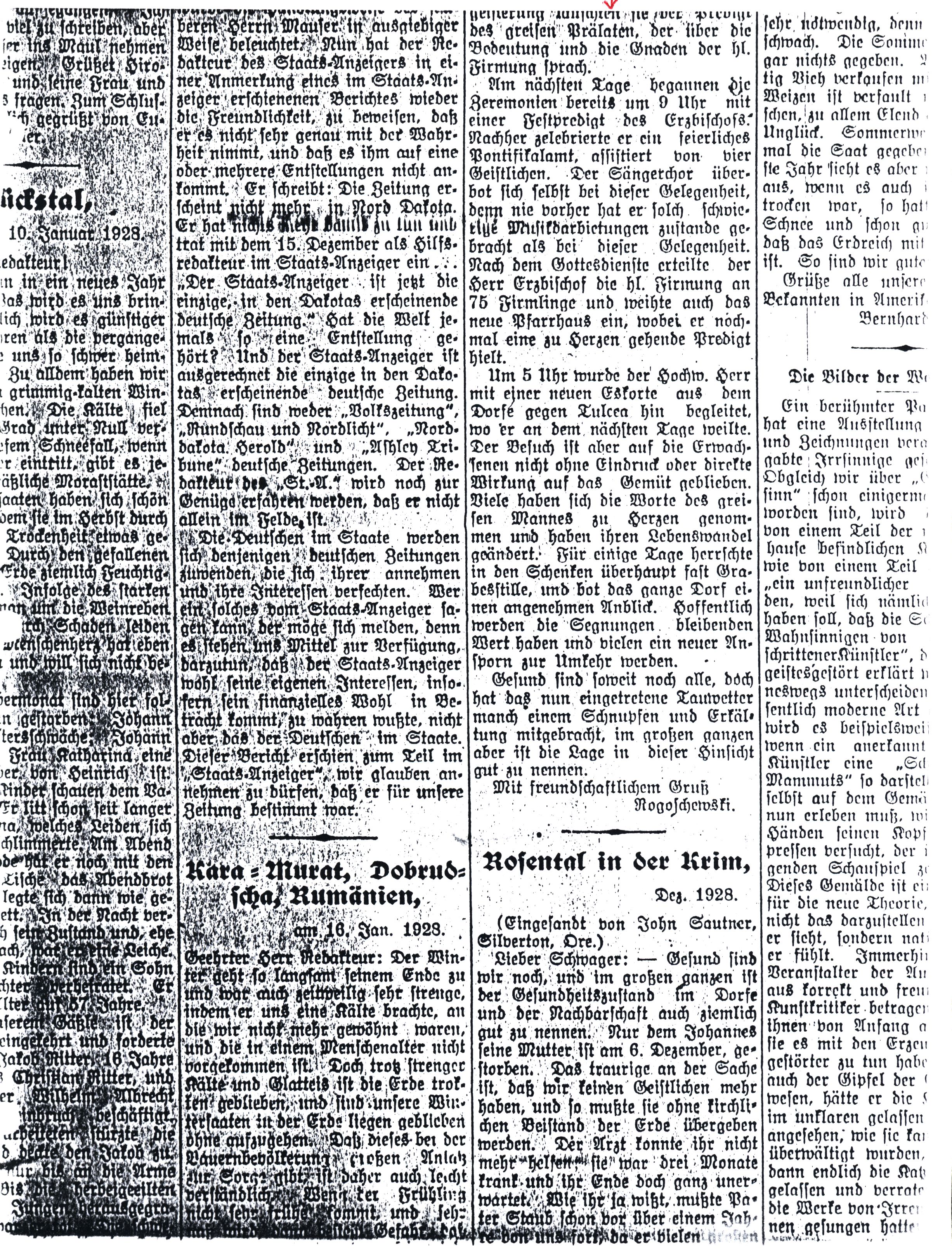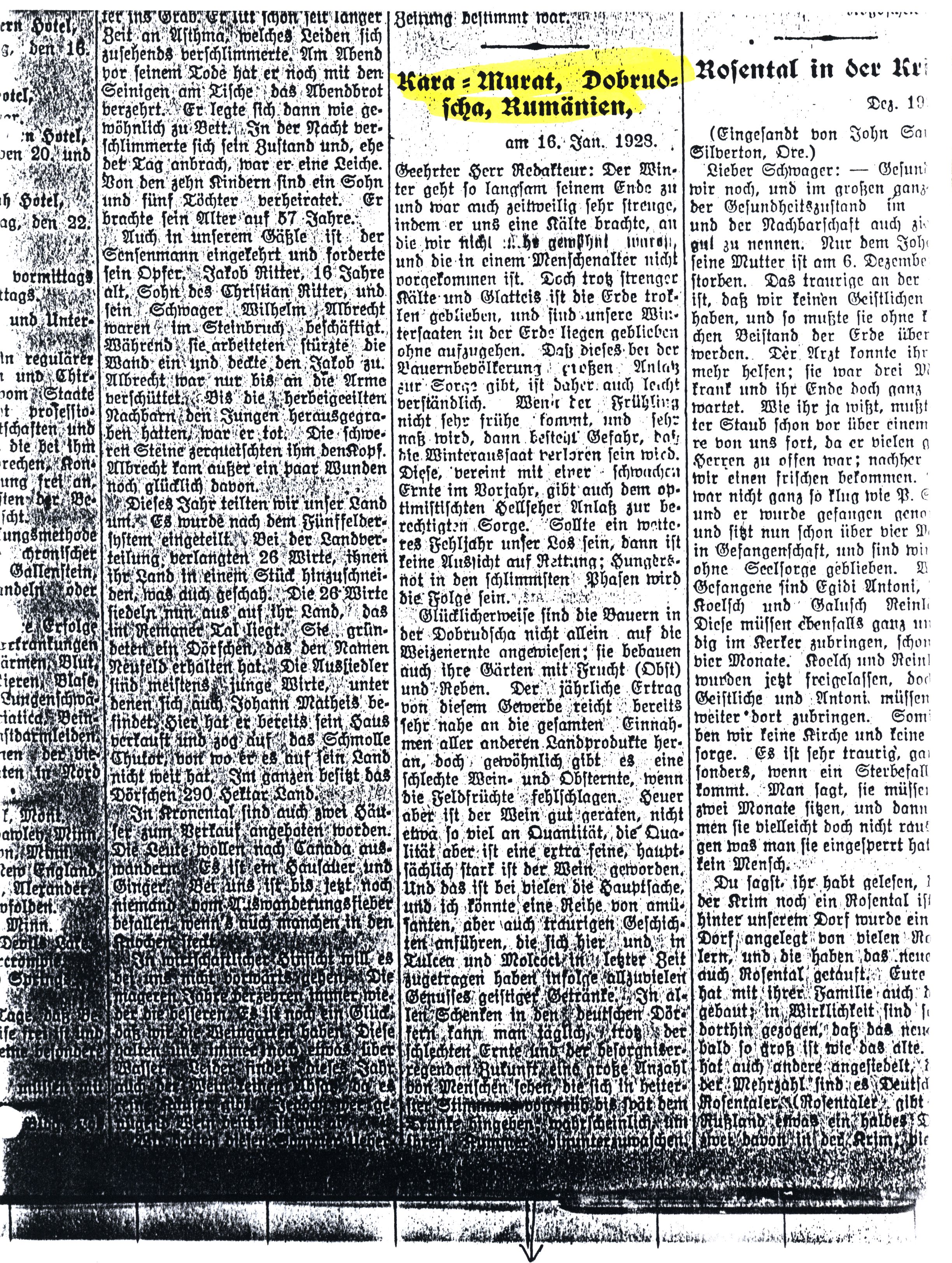 I could mention several funny incidents from Tulcea or Malcoci, which happened involving the imbibing of such spirits, as well as some sad tales. All the German drinking establishments have a regular clientele, regardless of the harvest woes, who amuse themselves and are happily imbibing there. Maybe they are trying to wash away their grief in spirits. Some of the incidents occurring are beyond description. Over-imbibers act more like animals than civilized people of the 20th century.