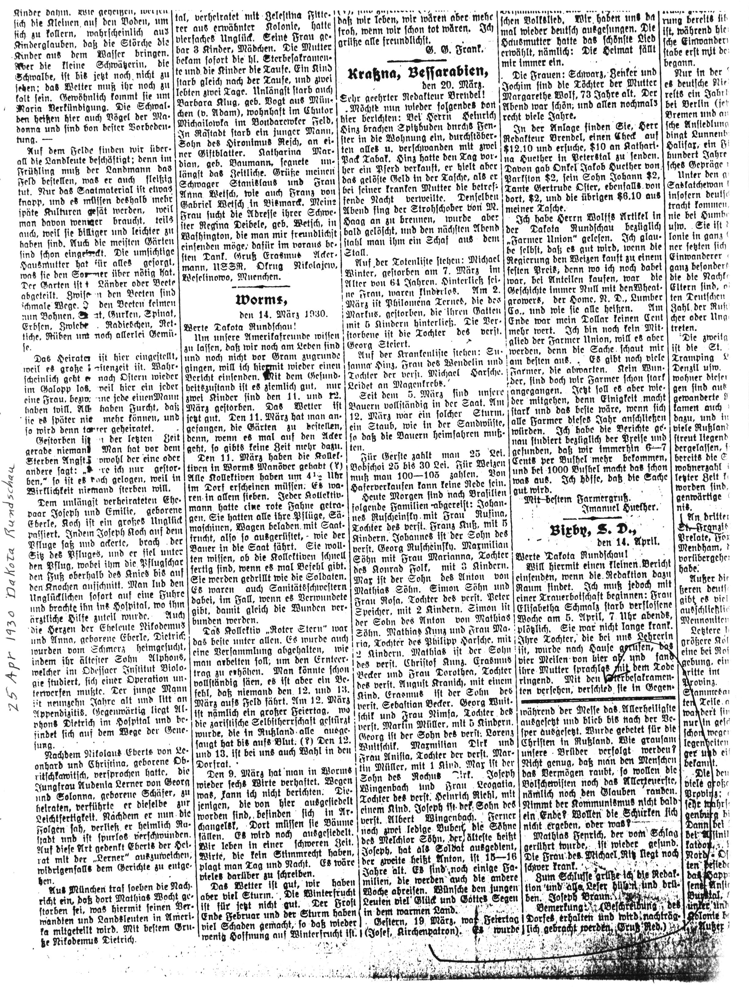 From: Krasna, Bessarabia 20 March 1930